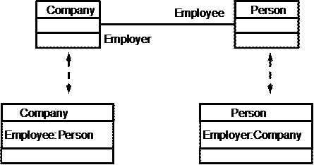 Пример показывает, что ассоциация ВладеетАкциями (OwnsStock) между классами Персона и Компания может иметь несколько экземпляров - соединений. Обратите внимание, что два соединения, являющиеся экземплярами одной и той же ассоциации, не могут связывать одни и те же объекты дважды.