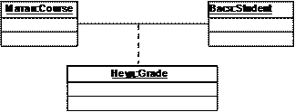 Т. е. при наличии класса ассоциации с каждым соединением связан его экземпляр (в примере для каждой связанной пары курс - студент есть экземпляр класса оценка):